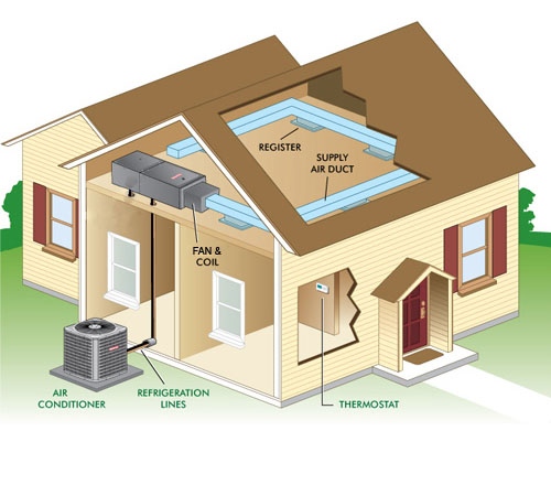 • Central air conditioning can also be provided through a package unit or a heat pump.